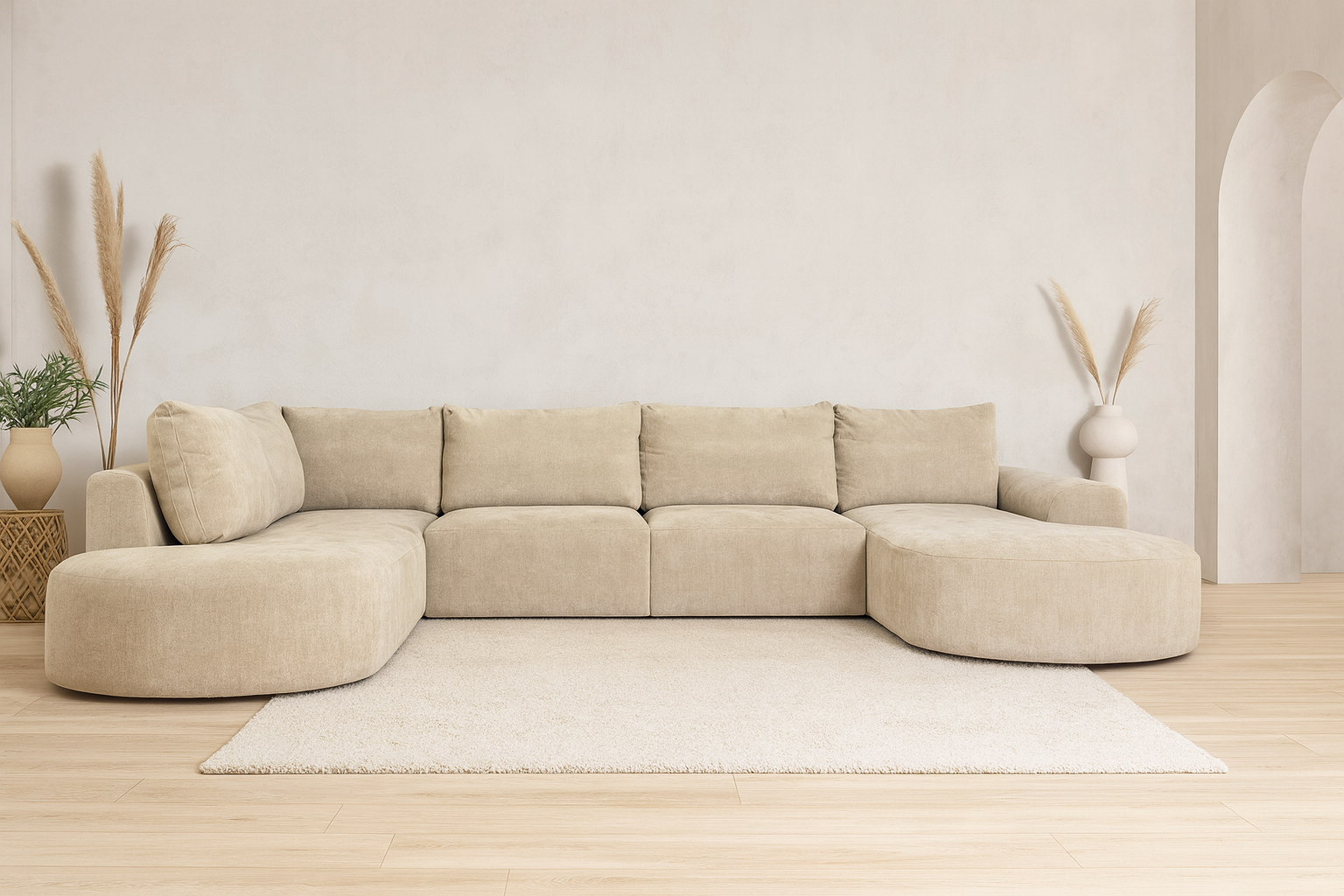 De Ares brengt een warme en uitnodigende sfeer naar uw woonkamer. Met zijn zachte beige bekleding en royale afmetingen biedt deze bank een premium lounge-ervaring die toegankelijk is voor iedereen.