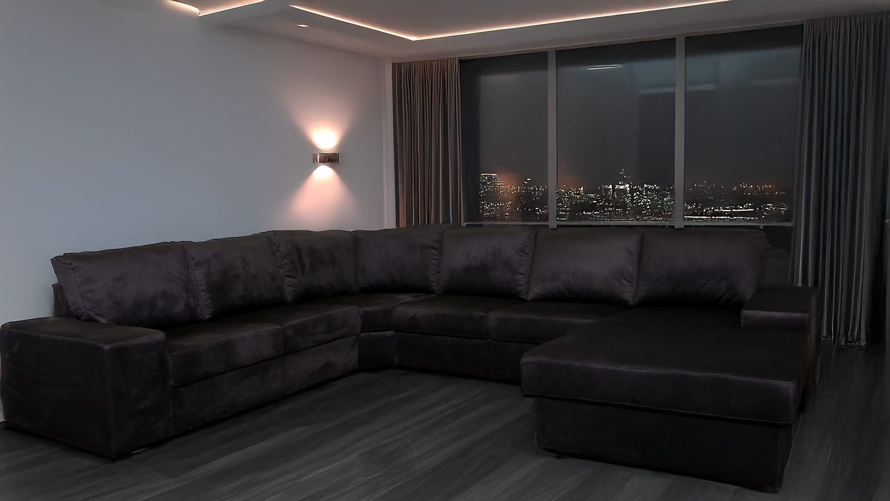 De Yola Groot is de perfecte synergie tussen de zachtheid van organisch design en de kracht van een royaal formaat. Met haar unieke U-opstelling en afgeronde hoeken biedt deze bank een ongekende hoeveelheid lounge-ruimte, terwijl de diepzwarte kleur zorgt voor een onvergetelijk statement in uw woonkamer.