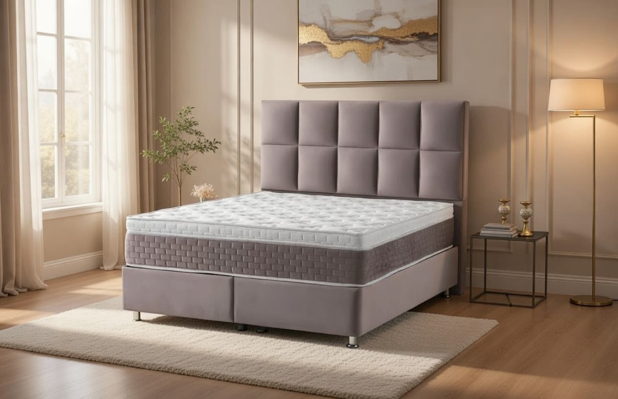 ANCONA luxe Boxspring – Statige Rust in Tijdloos Beige